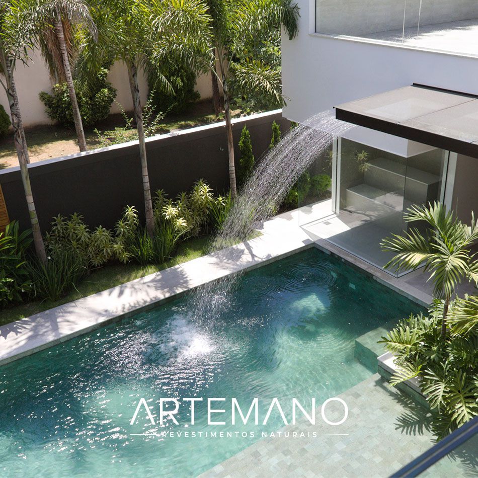 Banheiros, Cascatas, Jardins, Saunas, Piscinas, Espelhos D'Água, Pisos Externos, Paredes Externas e Internas. |