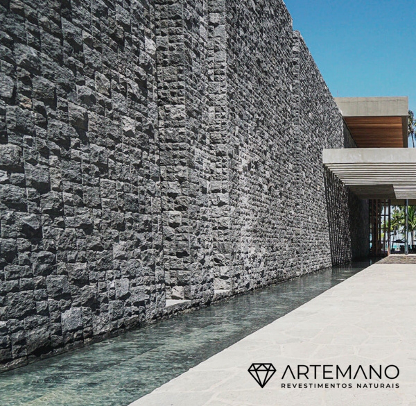 Sua textura irregular cria efeitos únicos de luz e sombra, proporcionando profundidade e caráter aos ambientes, tornando-a ideal para revestir paredes de áreas externas, jardins, fachadas, lareiras, muros e ambientes internos que buscam personalidade e dramaticidade.